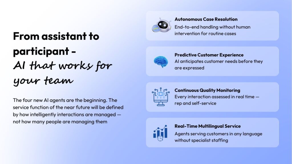 The four AI agents Microsoft launched in 2025 are the beginning of that shift, not the end of it. The roadmap points towards service environments where the majority of routine interactions are handled end-to-end by AI, customer intent is understood before a query is even submitted, and quality monitoring operates continuously across every channel without requiring supervisor review of individual interactions.